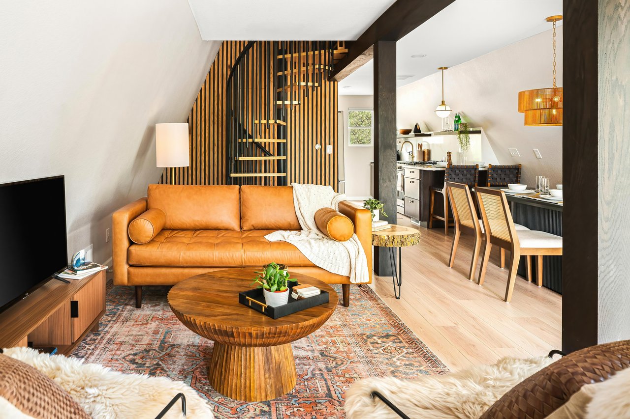 A once-rustic camp transformed into a modern, soulful mountain getaway built to thrive as a standout Airbnb.