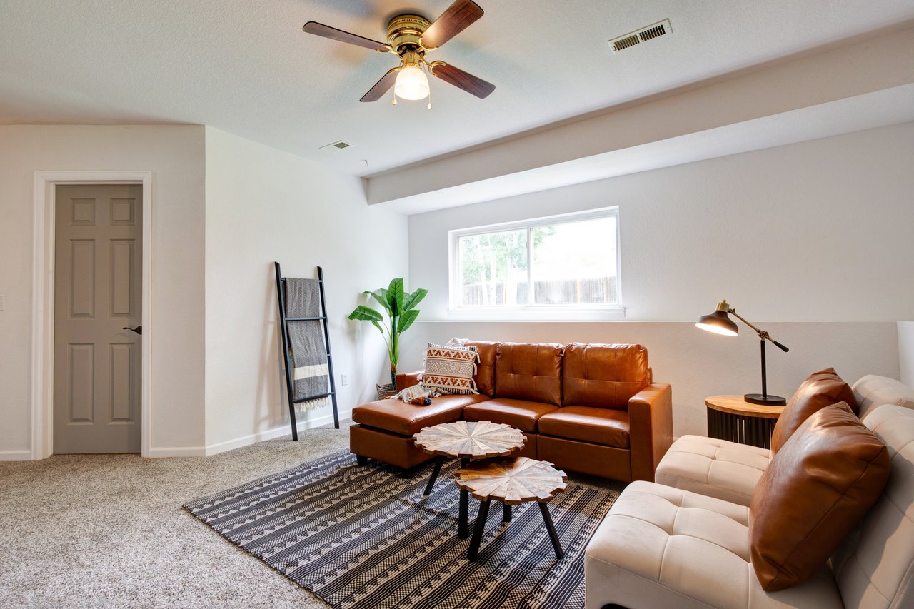 The home received new paint throughout, updated LVP and carpet, and refreshed cabinetry. In the kitchen, we added new countertops and eliminated the outdated two-level bar, creating a smooth, open workspace perfect for entertaining. Both bathrooms were fully updated with new tile, new tubs, and new vanities bringing them firmly into the present day.