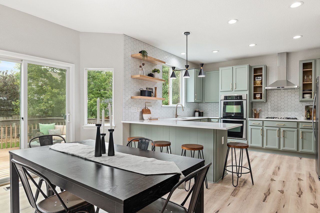 One of the most impactful upgrades was replacing the dining room’s large window with an expansive accordion door system. This created seamless access to the property’s nearly one-acre lot and brought indoor/outdoor dining to the heart of the home, connecting everyday living with Colorado’s natural beauty.