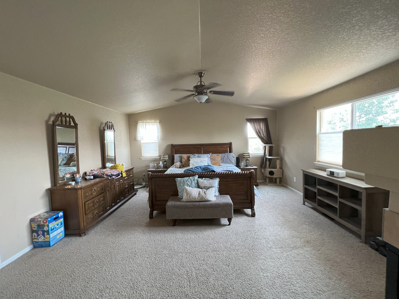 Exterior improvements included extensive landscaping cleanup, new grass, a sprinkler system, and renewed paint color completed the transformation.