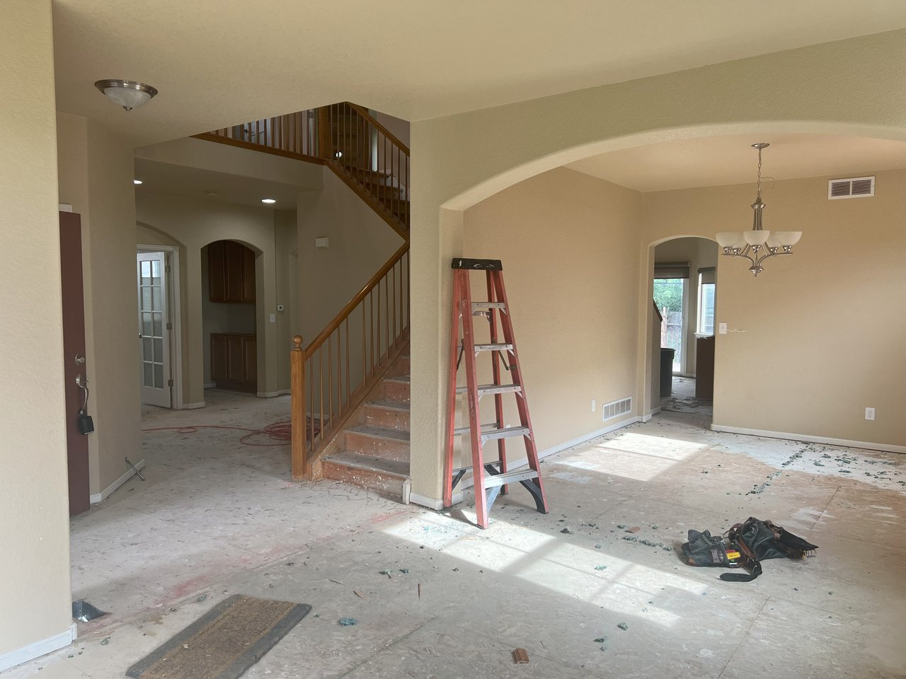 We started with a complete interior cleanup, removing every inch of damaged flooring and addressing the lingering effects of long-term pet use. With a fresh foundation in place, we shifted the home away from its era-defining “builder beige” and introduced an updated, cohesive color palette that instantly elevated the feel of each room.