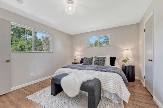 We updated the entire interior with a fresh, cohesive palette. Painting walls, ceilings, and trim to bring light and consistency back to the space. The original hardwood floors were refinished to showcase their craftsmanship, and new lighting added warmth, clarity, and a contemporary edge. Outside, we trimmed back overgrown bushes and trees, cleaned up years of leaves, and revealed the beautiful architecture that had been hiding underneath.